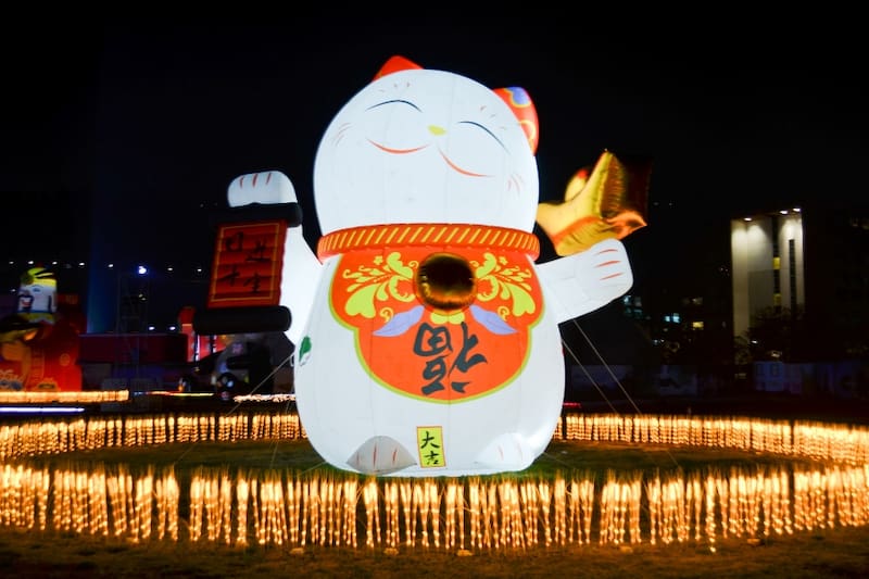Entre las impresionantes esculturas se encuentra un túnel con forma de dragón, una réplica inflable de la luna, un Zhaocai Mao el popular gato de la fortuna y la suerte y una reproducción de la famosa Plaza de Tiananmén.