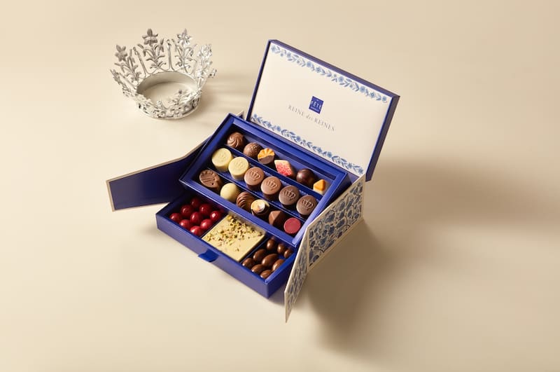 Diseñada por la ilustradora chilena Catalina Cumsille, la colección se llama Reine des reines (Reina de reinas) y se compone de algunos chocolates, galletas y productos hasta ahora inéditos.