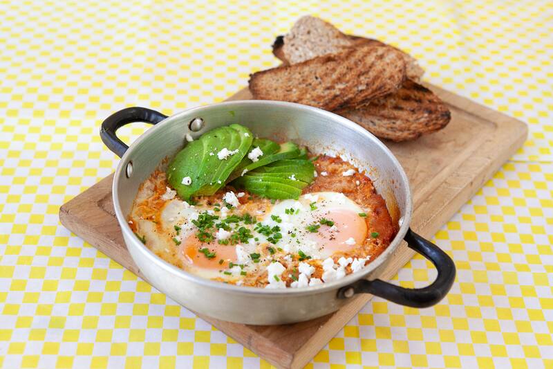 ¿Cuáles son nuestros favoritos? La Shakshuka ($8.600), dos huevos pochados en salsa de tomate natural, con pimentones, cebolla y especies, palta y queso feta. Todo en una paila, con tostadas para untar. También el Eggy pochado ($7.900), que llega sobre una tostada con palta, mix de hojas verdes y tomates cherry salteados.