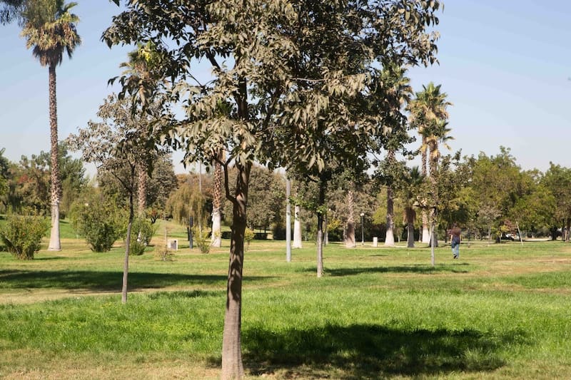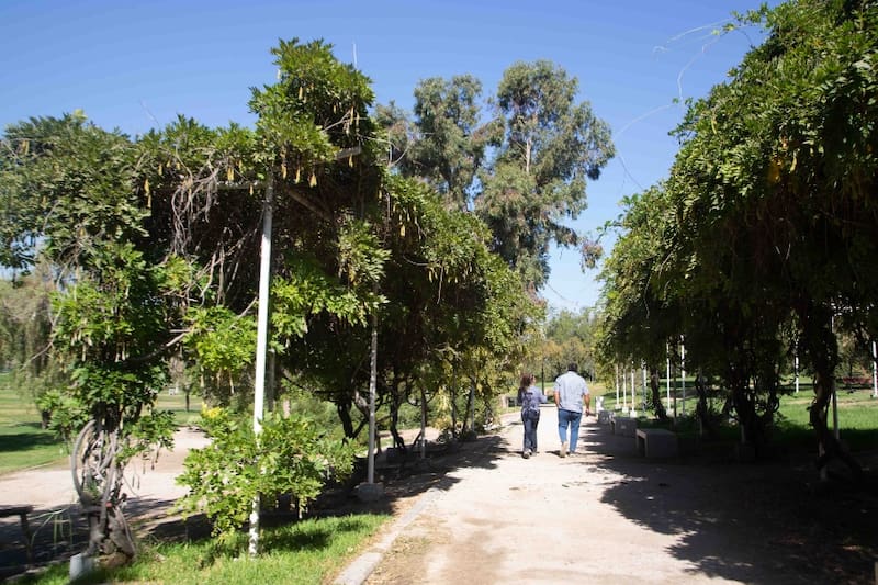 Además, puedes apreciar distintas especies de árboles, algunas nativas, como maitenes, y otros exóticos, como cedros del Líbano, palmeras y plátanos.