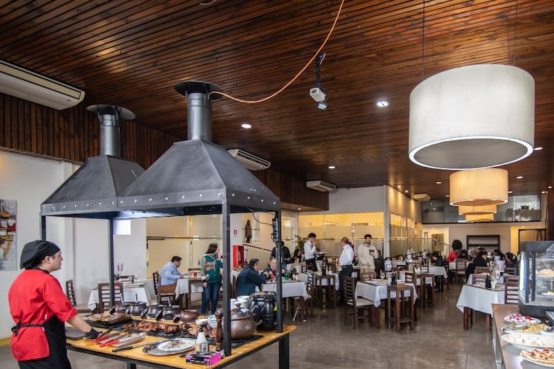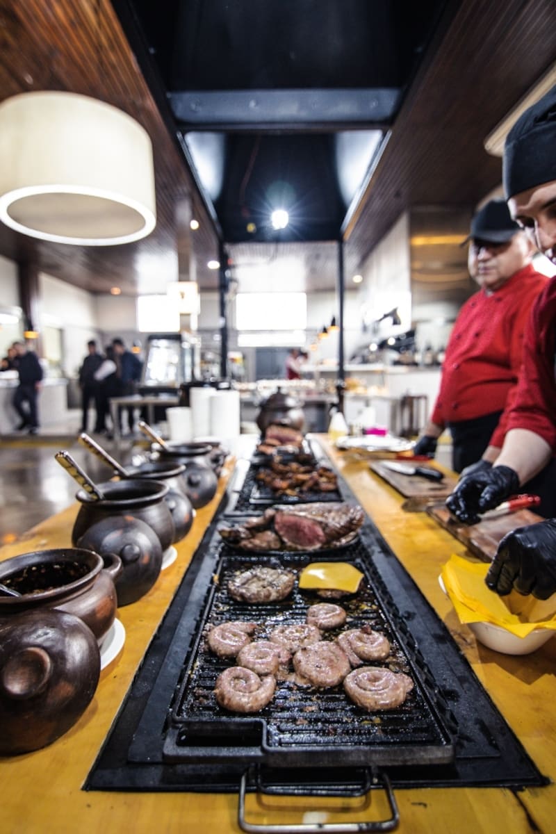 Y el formato es el mismo: los garzones se acercan a las mesas con pequeñas parrillas y cortes como lomo vetado, lomo liso y filete, por ejemplo, además de embutidos como morcilla, butifarra o longanizas.