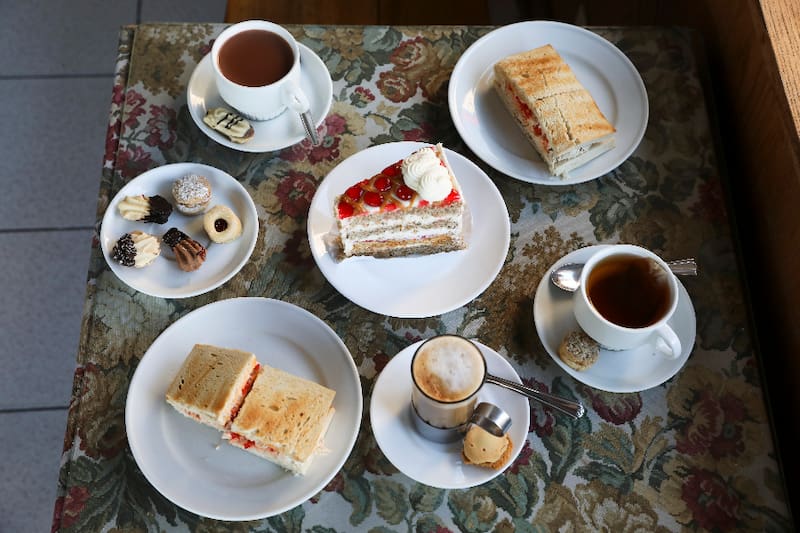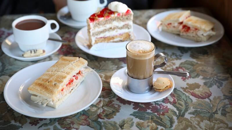 Por supuesto que debes probar también la pastelería del lugar, con delicias como la Reina Ana ($ 3.520), una de las más pedidas y que consiste en un biscocho con nueces y mil hojas, crema chantilly, manjar y mermelada de cerezas.
