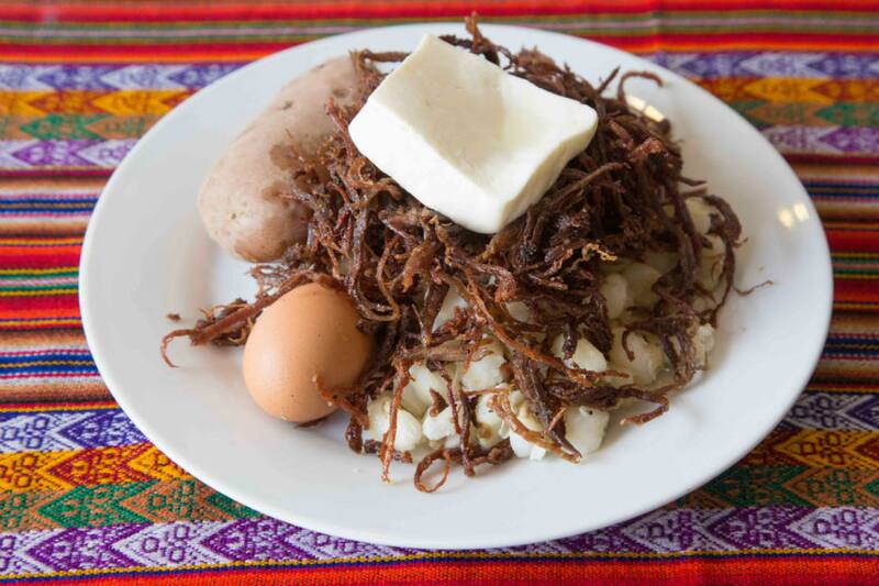 Otro de sus hits es el "plato paceño", con bistec de vacuno, choclo blanco, papa cocida y queso fresco.