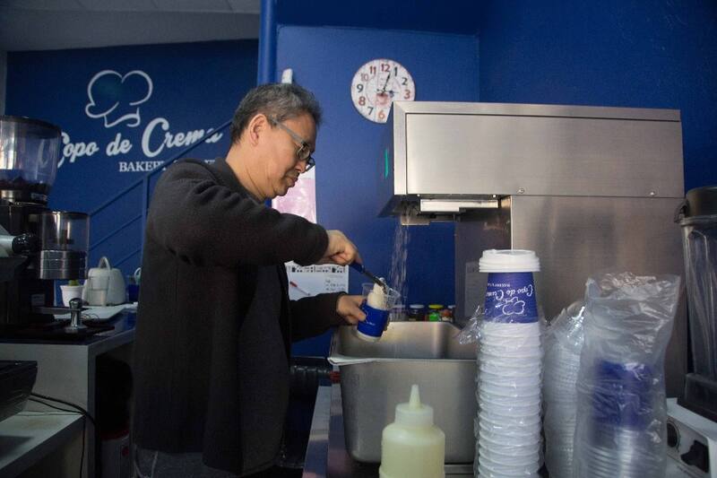 Tiene esas características porque se elabora con una máquina especial, traída de Corea, en la que se introduce la leche y esta sale convertida en forma de una espuma de nieve.