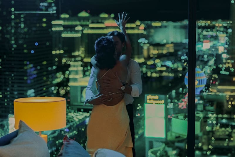 Lo que deriva en días de conversación hasta el encuentro que concretan en Las Vegas, ciudad en que él está de visita y ella es bailarina de un club nocturno, aunque le dijo que era enfermera.