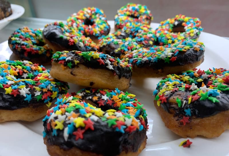 Además de dulces, como donuts y torta de chocolate, y postres bien peruanos, como suspiro limeño, crema volteada, tradicional y de coco, y fruta fresca, desde naranja y sandía y frutilla, dependiendo de la estación.