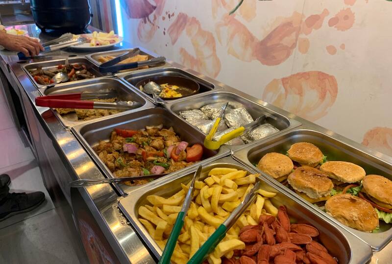Uno donde te puedes acercar cuantas veces quieras a sus dos estaciones, una con preparaciones calientes y otras frías, y donde gran parte son platos típicos de la cocina peruana.