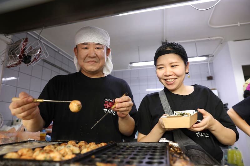 Ahí lo más probable es que tengas que hacer fila mientras miras la cocina a la vista, de Masayuki, japonés de Kansai, quien hace en el momento sus takoyaki, bolitas tipo buñuelos que son típicas de la cocina callejera japonesa.