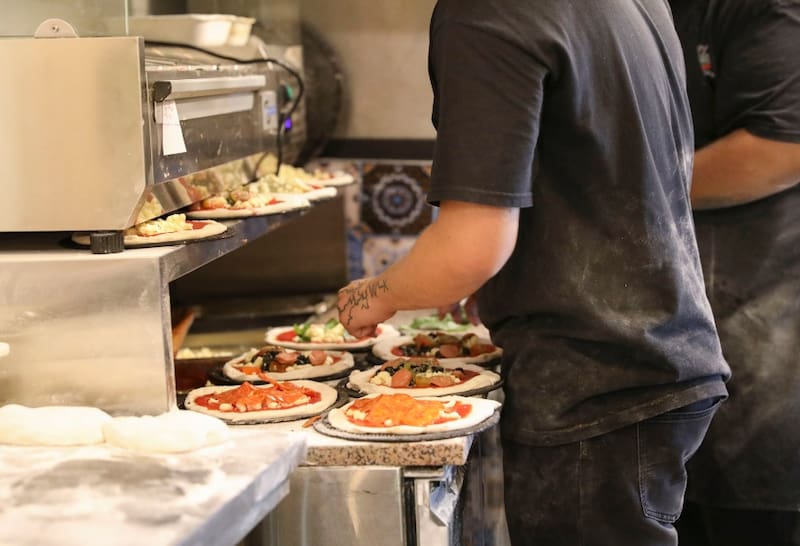 Además, la masa tiene la característica de que se fermenta por 24 horas y se hornea en horno a la piedra, dejando también los bordes aireados y crujientes.