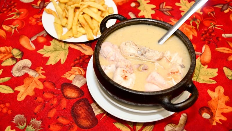 La novedad, si no puedes viajar a probarlo, es que puedes pedirlo por delivery a través de su página. Está disponible la clásica receta de pollo al coñac ($27.000, para tres o cuatro personas), con todo el caldito, al que le puedes agregar papas fritas ($7.500 para dos); arroz blanco ($3.500), o incluso una porción aparte de caldo ($7.500, los 700 cc).