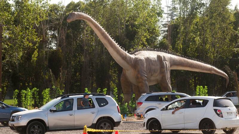 Es que ahí grandes y chicos no solo se asombran coe enormes criaturas prehistóricos, sino también de que disfrutan de un panorama familiar ad hoc a la pandemia.