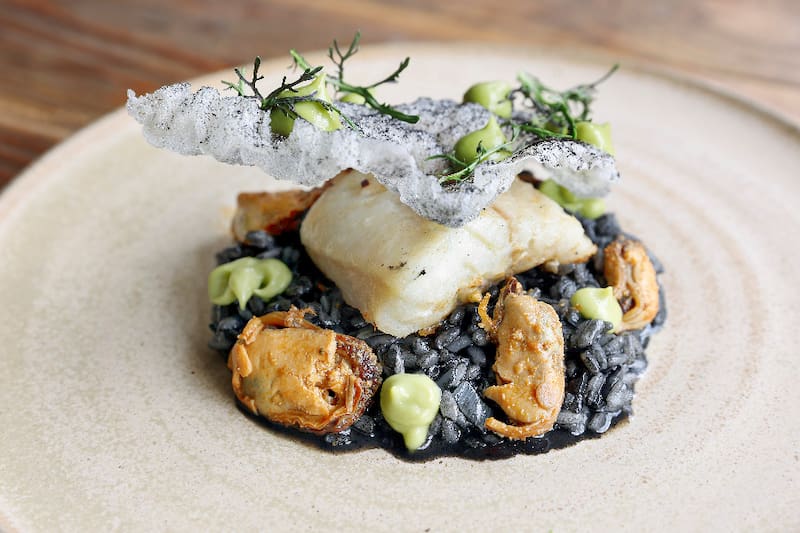 Por lo que, como te contábamos, se trata de un menú que cambia una vez a la semana, y en el que te puedes encontrar con platos como un pescado con arroz negro, la pesca del día, con choritos escabechados y una emulsión de palta con caldo de choro.