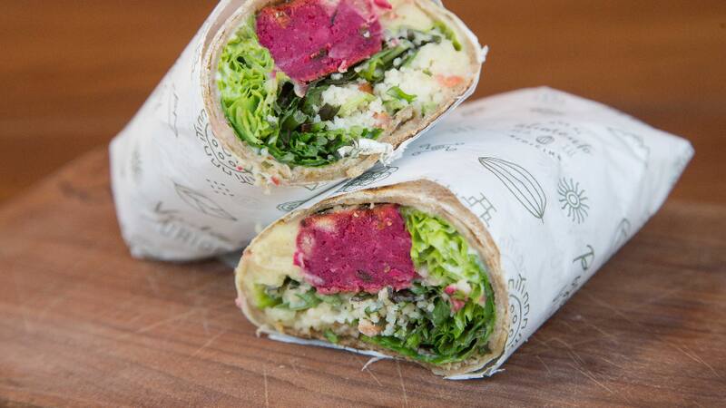 Otra alternativa es el "wrap mediterráneo" ($ 5.990), que es una tortilla integral con mix de hojas verdes, galafel de betarragas asados, cous cous con pepino, tomate, perejil, menta, hummus y veganesa.