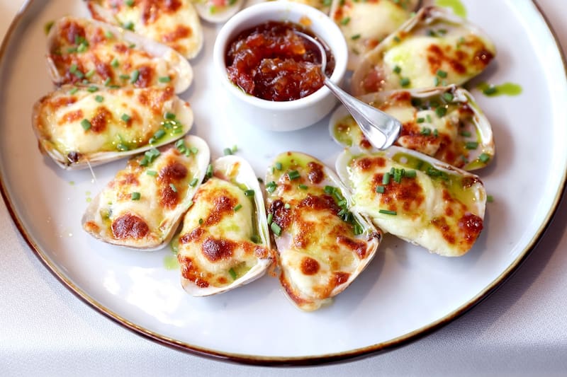Una cocina que vuelve a pensar los platos nuestros de siempre. Se nota desde las entradas, como las empanaditas fritas ($12.500 las cinco), rellenas de camarón nylon con queso mantecoso, o las machas a la parmesana ($18.900), suaves y blanditas, que vienen con una mermelada de pebre para acompañar.