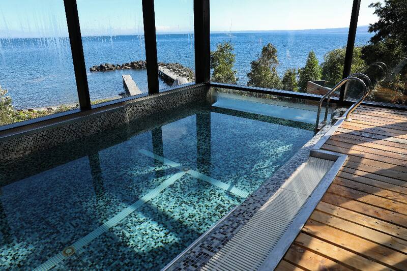 Además, cada una de sus 25 habitaciones tiene vista al Lago Llanquihue y al Volcán Osorno a través de un ventanal de piso a cielo. Más una orientación nororiente y norponiente que permite una agradable temperatura ambiente natural.