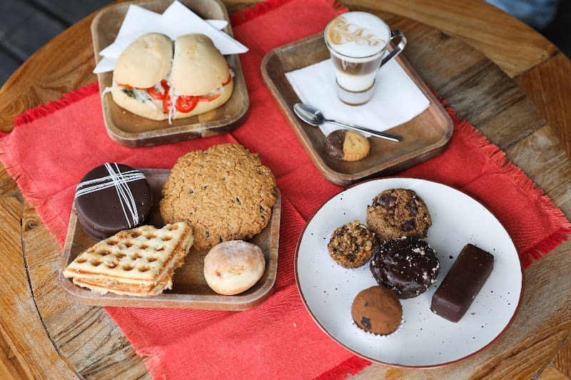 Ahí, funciona una cafetería para probar en el lugar o llevar, con opciones como el kuchen del día ($ 3.500), que puedes acompañar de un capuccino ($ 2.600); o de un chocolate caliente ($ 2.600), por ejemplo.