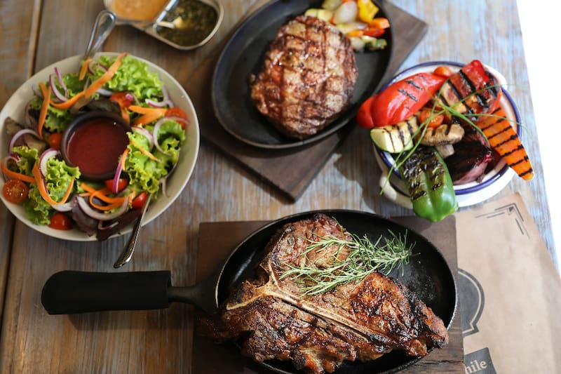 Además de las carnes, como el Lomo vetado ($ 17.500 de 300 grs, y $ 29.200 de 500 grs); o el Lomo liso ($ 16.500 de 300 grs), que puedes acompañar de Papas fritas ($ 4.500).