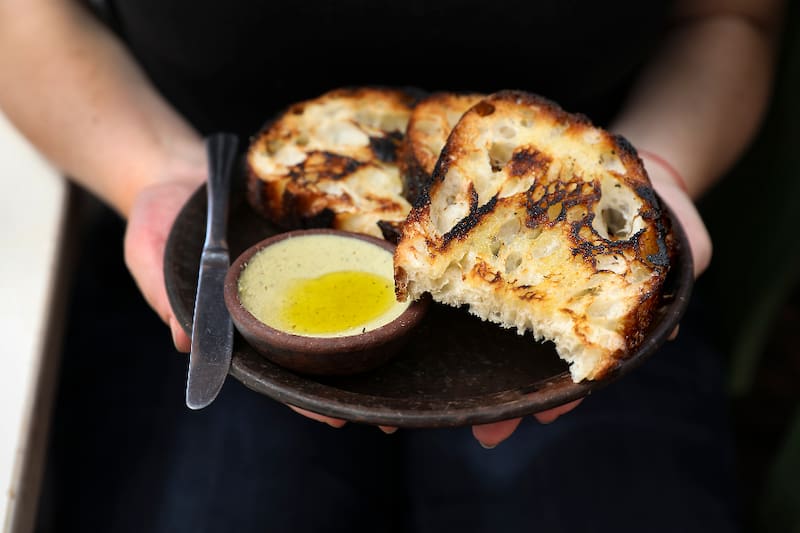 A cargo de Pablo Feest Pinninghoff, ahí todo, desde el pan de masa madre que llegará a tu mesa apenas te sientes hasta la charcutería, es hecho ahí mismo.