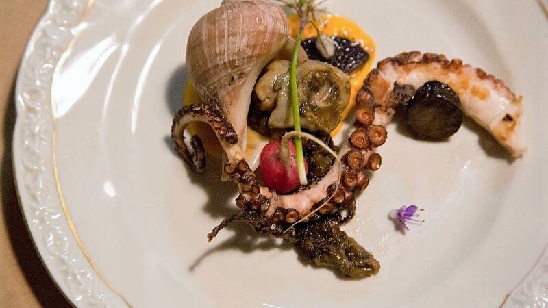 Y que parte con una recepción, que incluye "tártaro" de filete cortado a mano y encurtidos; "calugas de polenta" y un tipo de "queso", pero hecho a partir de frutos secos.