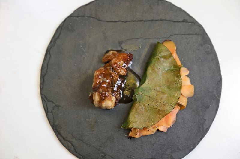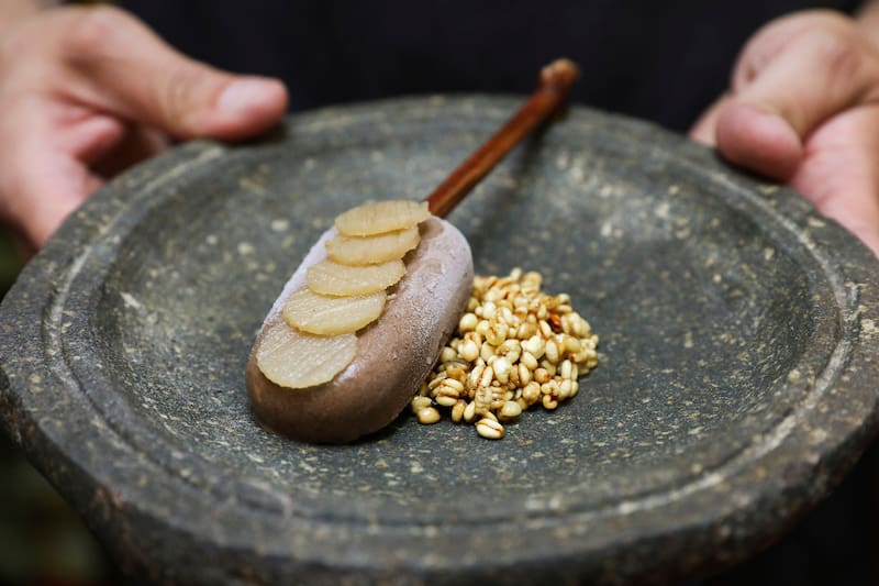 Así, puedes encontrarte con entradas como el chipirón del monte ($ 8.000), que es una paleta helada de este hongo del sur de Chile, con chocolate y nalcas encurtidas, sobre una camita de trigo mote crocante. La idea es que la vayas untando y probando.