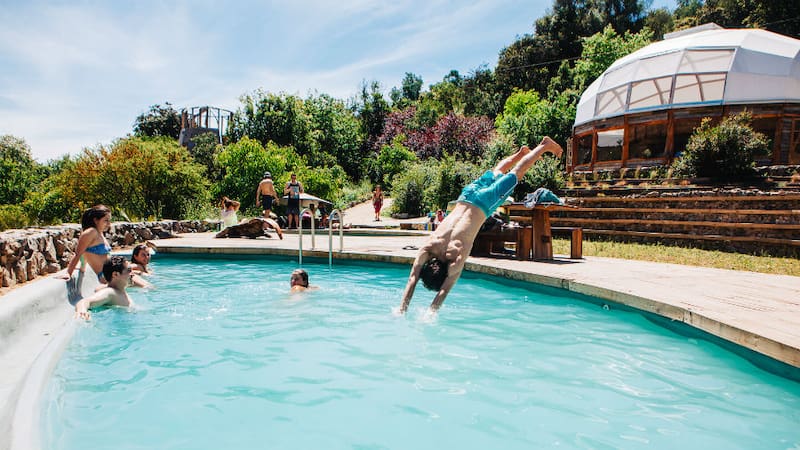 Ahí alojas en unos domos que tiene forma de pelota de rugby y que están en medio de bosques nativos de peumos y boldos, entre otras especies.