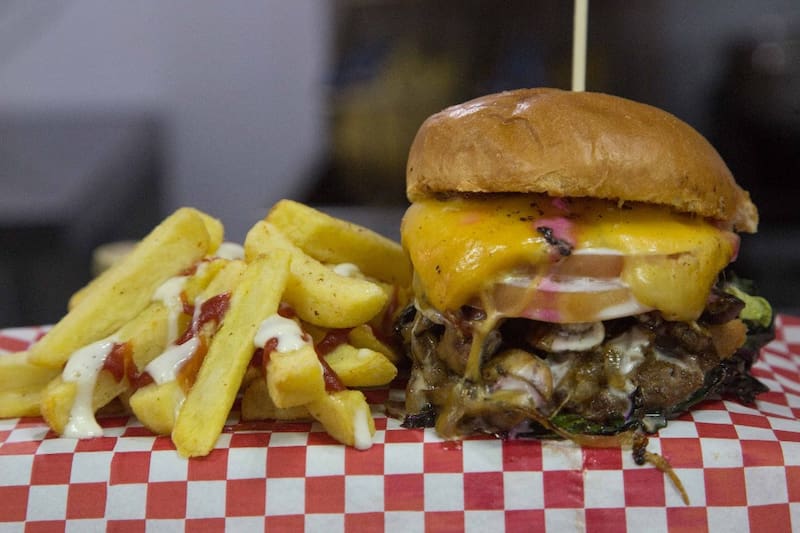 Como las hamburguesas, sus especialidad y con una hamburguesa hecha en el lugar, jugosita, y acompañadas de unas adictivas papas fritas, también caseras.