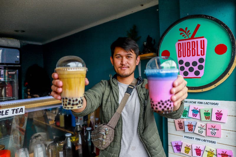 Bubbly Bubble Tea es el local que sólo abre sábados, domingos y festivos, el tailandés Tris Eastwood, en la calle Bio Bio 595, muy cerca del Persa Biobío, en pleno barrio Franklin.