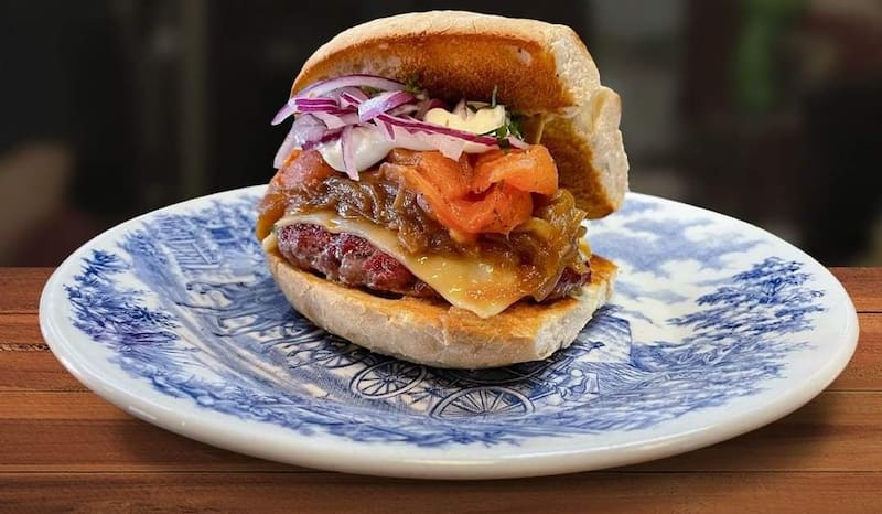 Puedes elegir entre lomo vetado, churrasco, mechada, fricandela (hamburguesa chilena), fricanprieta, o pollo al pil pil para armar tu sanguchito.