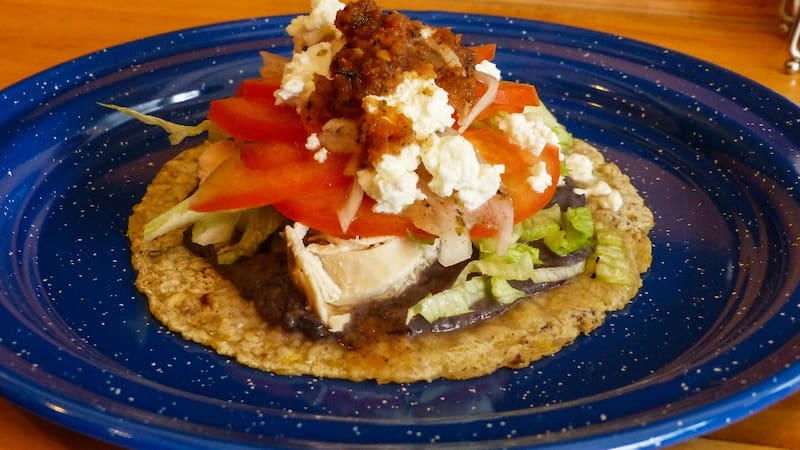 El resto de los días encuentras cualquiera de sus variedades, como el "pollo deshilachado", que se acompañan de cuantas salsas quieras, como la "pico de gallo", similar al pebre chileno.