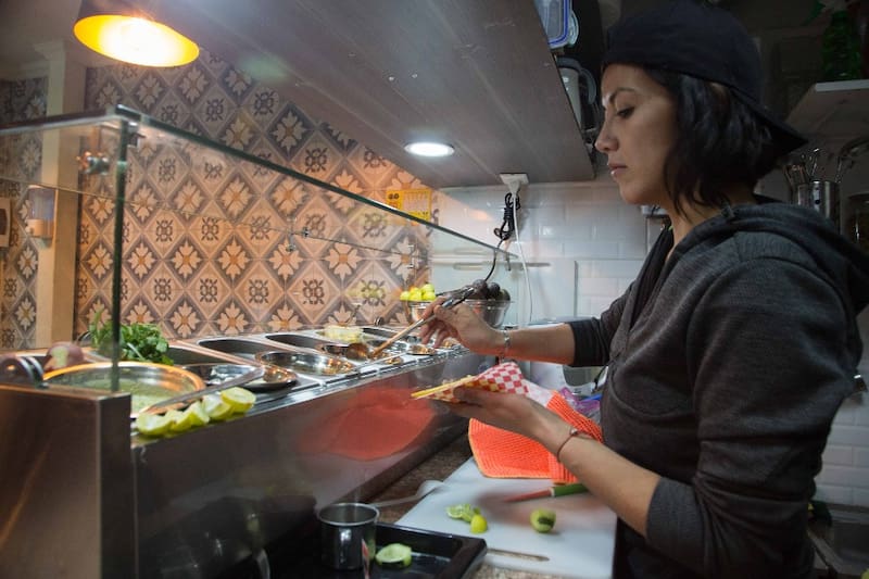 La gracia es que las hace caseras, en el mismo lugar. ¿El resultado? Unas tortillas con textura, sabrosísimas.