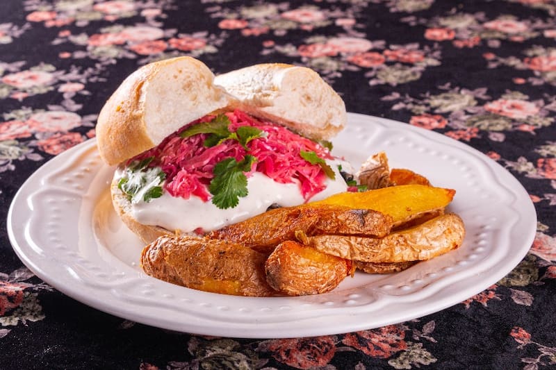 ¿Sanguches? Prueba el premium roast beef ($ 8.900), que es un pan de papa negro, relleno de lomo cocinado con especias, cebolla al vino tinto, salsa de queso y merkén, más un guiso de champiñón con pimentones rojos y menta.