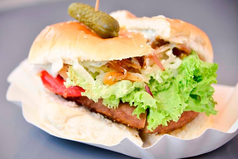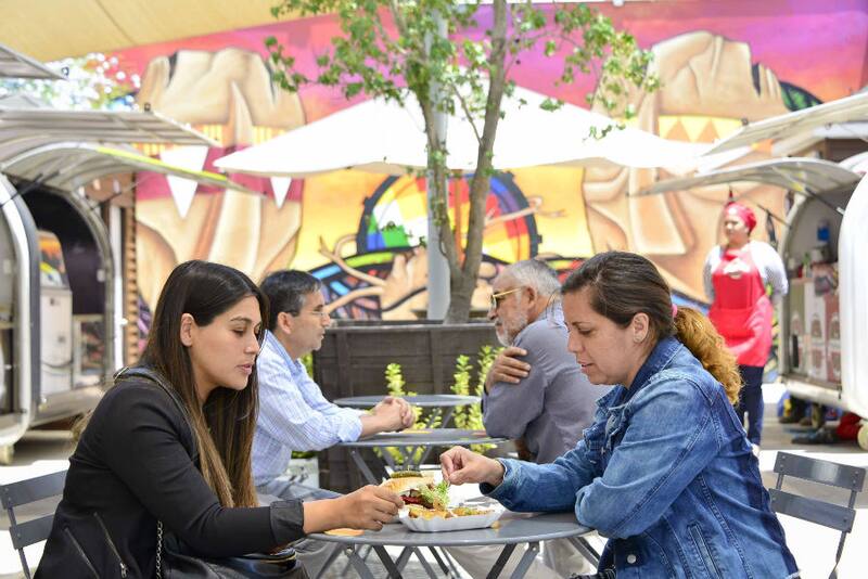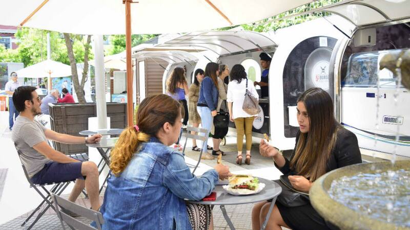 La gracia del lugar, es que ahí podrá comer rico en alguno de los más de 10 food trucks instalados en el lugar, como el de Cinco Sentidos, con cinco variedades de hamburguesas de vacuno ahumada de 400 gramos.