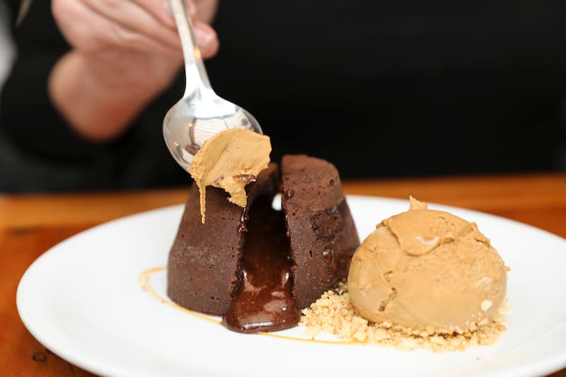 De postre pide la tartaleta de nuez y manjar ($ 4.900), que viene con el helado que elijas; o el Coulant de chocolate ($ 5.500).