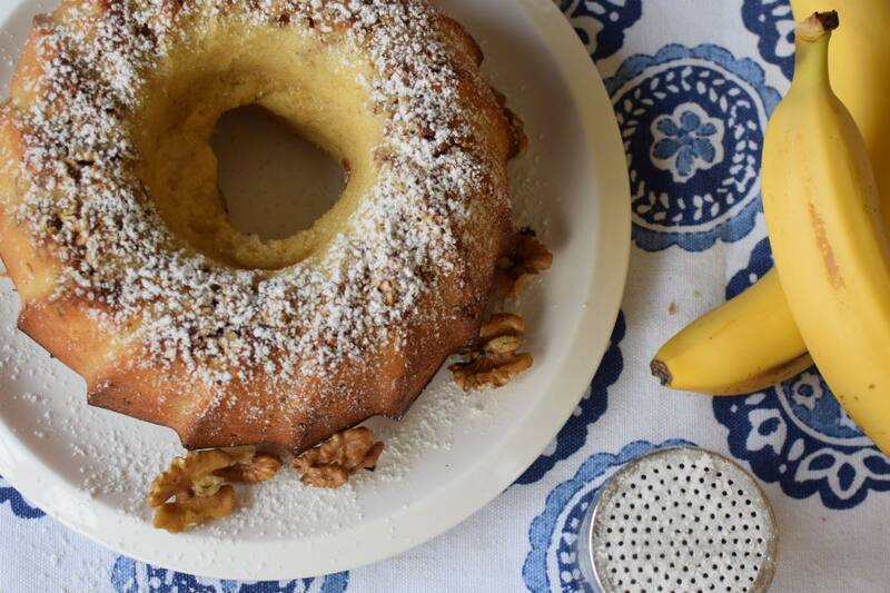 Inauguramos nuestra sección de recetas con este sabroso y esponjoso queque de plátano (para ocho personas). Es ideal para no tener que tirar a la basura y ocupar esos plátanos súper maduros, de cáscara negra y relleno blando que están en casa.