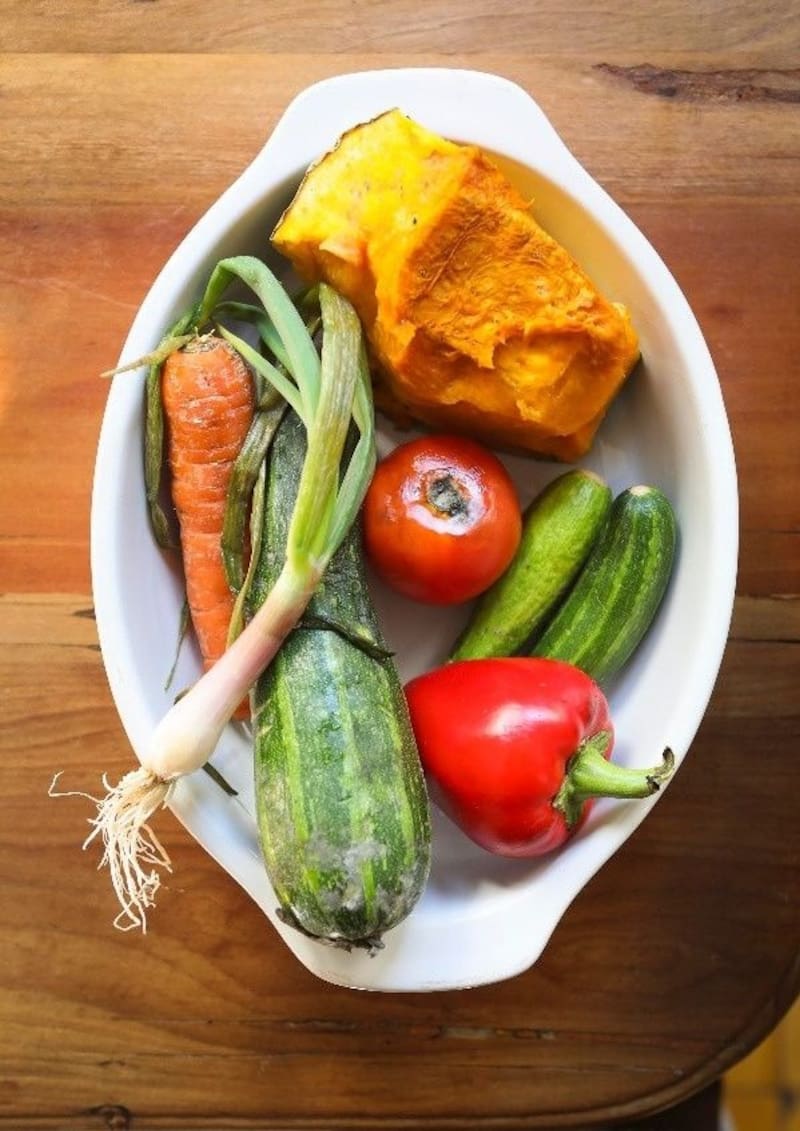 - Picar las verduras que tengas, puede ser zapallo italiano, pimentón, zapallo camote, brócoli, espinaca o acelga por ejemplo.