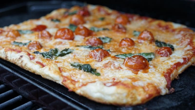 - ¡Este es un super dato! Las parrillas a gas, esas que tienen tapa, llegan a 500 a 600 grados, ideal para hacer pizza. En este caso también pre calienta la base de hierro y hornea tu pizza con la tapa cerrada. Estará lista en unos 5 minutos.