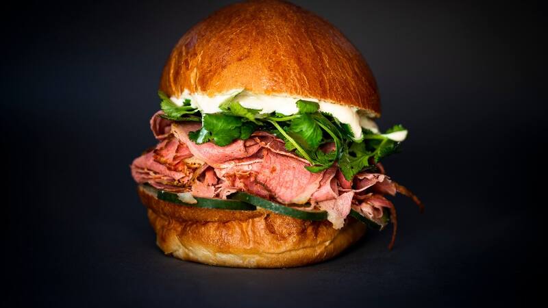 Prueba el ahumado ($ 6.200), relleno de un pastrami ahumado en madera de cerezo y roble, que se espera para que madure tres días, y luego se corta para que quede jugoso y se pone tibiecito en el sándwich, acompañado con una mayo con pepino encurtido casero, un toque de cilantro y mostaza.
