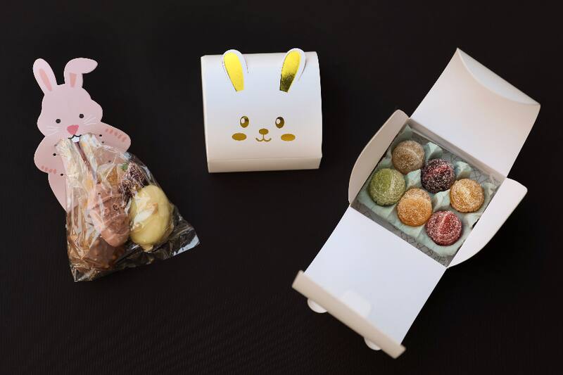 También la Bolsita conejo ($ 5.000), que viene con una paleta chocolatina frambuesa, praliné de almendras y barquillo; un Fancy Mantecol de praliné de mani, choco leche, barquillo y cristales de sal; más un huevo choco maracuyá con crispy maracuyá, gomita de durazno rojo y marshmallow de vainilla y una gomita damasco y culén.