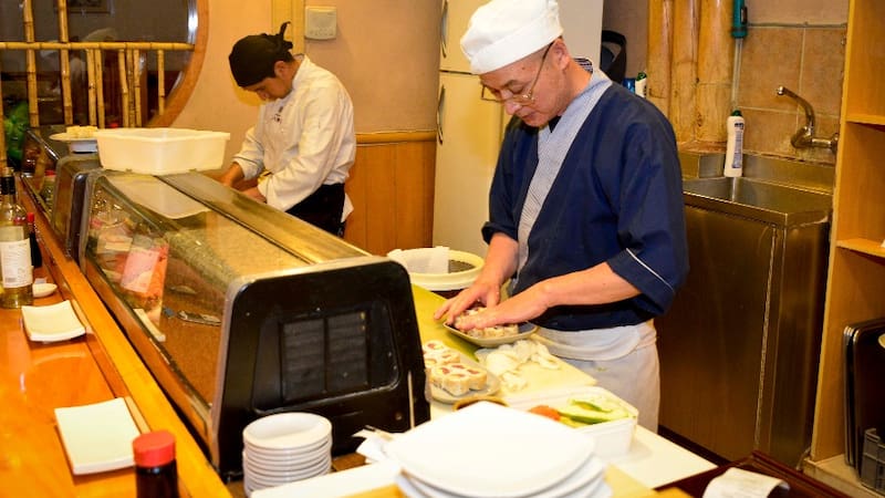 Pura tradición. Basta ver in situ los cortes de sahimi perfecto de los maestros en la barra.