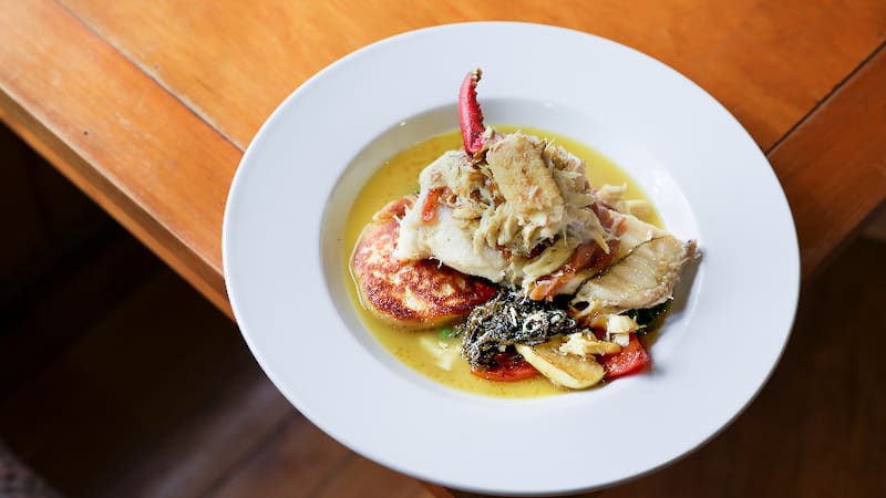 También la merluza austral ($ 15.000), una delicia que se hace con el lomo y vientre del pescado, más una reducción de éste, carne de cangrejo dorado, algas y chapalele, el pan tradicional hecho de papas, harina de trigo y manteca de cerdo. ¡De repetirse una y mil veces!