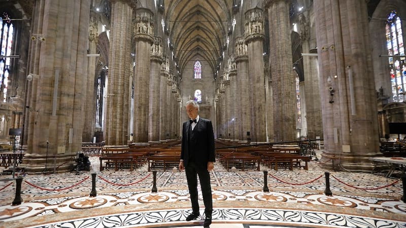 El fin de semana pasado, en pleno domingo de Pascua, el famoso tenor italiano ofreció una presentación desde la hermoso Duomo de Milán, la catedral de la ciudad.