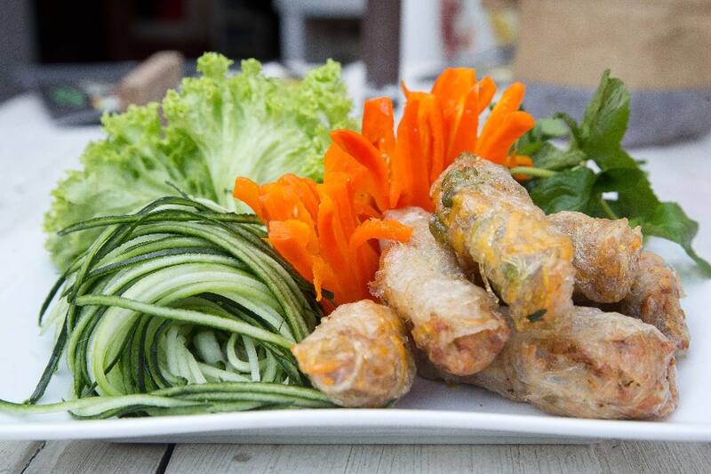 Pide los de "camarón" ($ 7.500) que son siete de estos rollos fritos, relleno con camarones y verduras como zanahoria y pepino, que se acompañan de una buena cantidad de menta y hojas de lechuga, cosa que envuelvas el rollo en ellas, y luego untes en alguna de las salsas agridulces, como la de tamarindo. El contraste entre las hojas frescas y la fritura recién hecha es una delicia total.