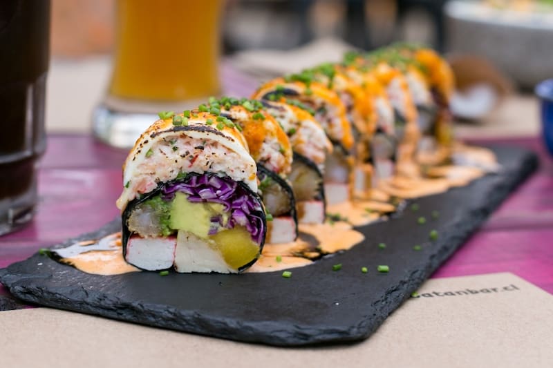 Uno de los platos recomendados es el roll Yaquesushi ($ 9.100), relleno de salmón, atún, kanikama, queso crema, envuelto en panko frito y acompañado con ensalada dinamita, un toping típico del sushi caribeño.