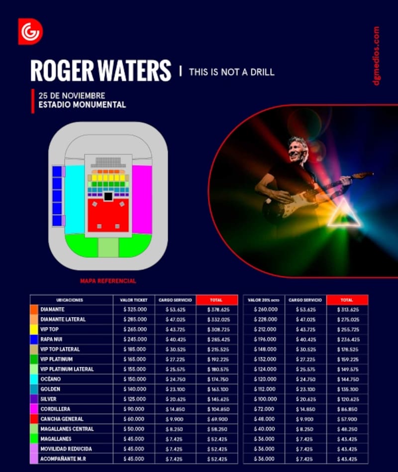 ¿No te lo perderás de ninguna manera? Entonces atento a los detalles de la ventra de entradas de Roger Waters en Chile 2023.