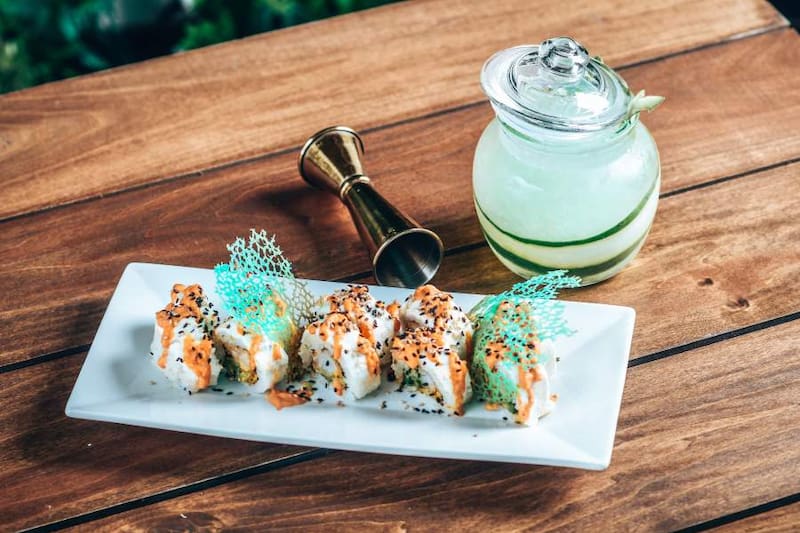 La comida no se queda atrás en Rosa Park, porque tienen una amplia carta centrada en el sushi y en las pizzas.