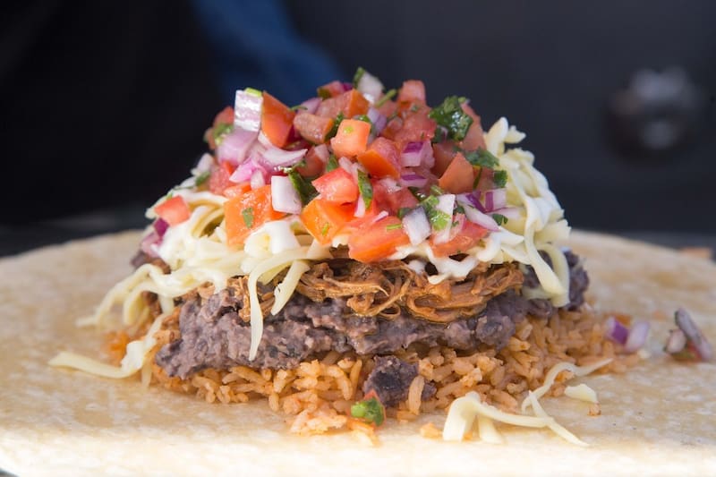 Si degustas un burrito sin carne, es decir vegetariano, este te costará $ 4.500, pero tienen uno llamado “bean burrito”, que es una tortilla de trigo, con porotos negros refritos, cebolla morada, y queso, que sólo cuesta $ 3.000.