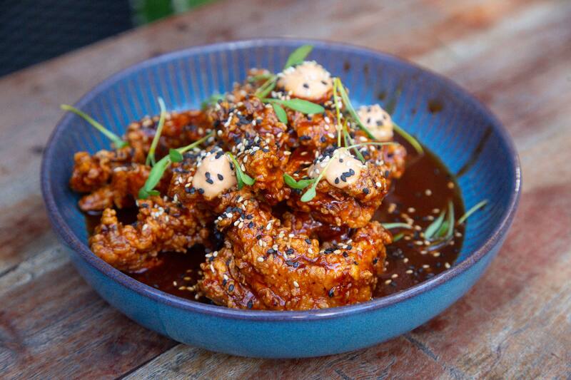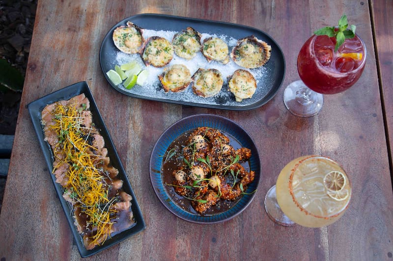 Si hablamos del menú, te contamos que entre las entradas que hay para elegir, está el Tiradito de atún, que viene con papas hilo, ají verde, pimentón, cebolla morada, cilantro y mango spicy; o Little spicy gai, que son alitas de pollo en sriracha con cilantro y sésamo.