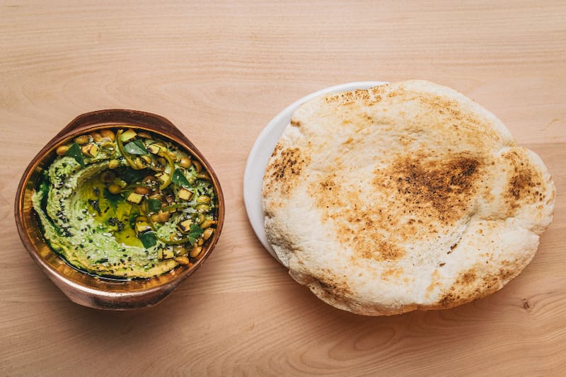 No conviene perderse sus variedades de humus, como el de habas y albahaca ($7.500), con el picor de los jalapeños encurtidos, palta, garbanzo crocante, sésamo tostado y aceite de albahaca.