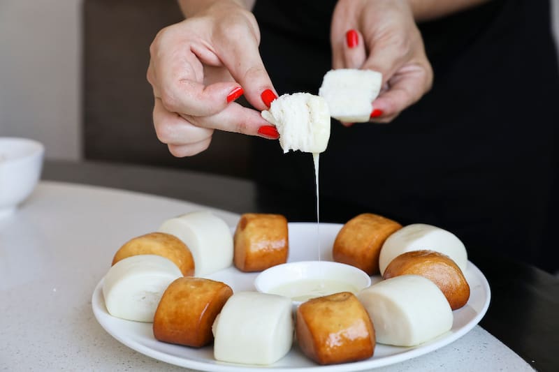 Y ojo, no te vayas son probar los baos ($ 5.800) o bollos al vapor, que llegan solo hechos al vapor y fritos, con un leche condensada en el centro, cosa de poder untarlos en ella. Una delicia.