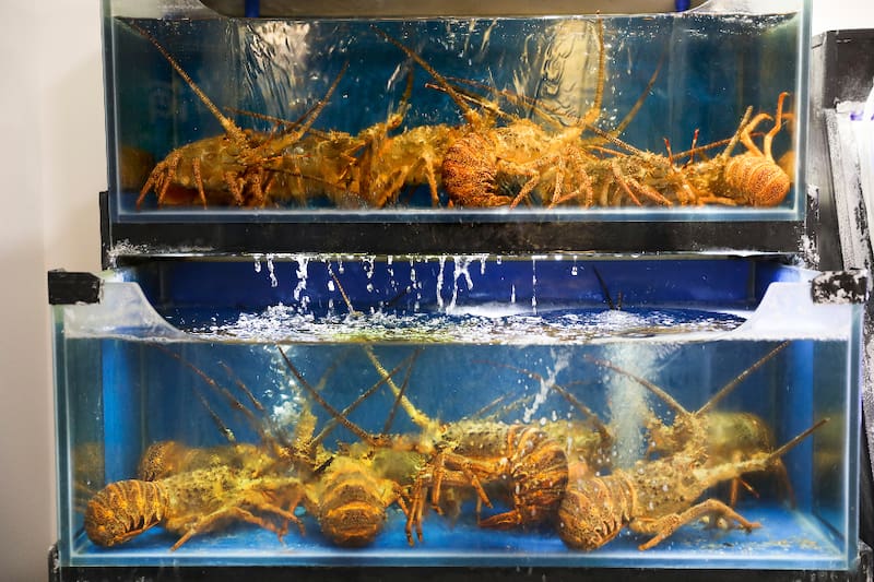 Primero, porque ya en la entrada te encontrarás con peceras, desde donde se extraen productos fresquísimos, como langostas, camarones de río, locos y navajuelas.